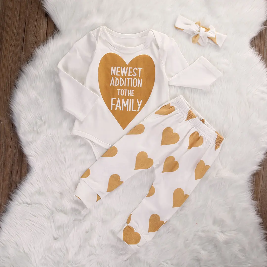 Good Offer of 3PCS New Infant Boy Girls Heart Long Sleeve Cotton Romper+Pants+Hats Suits Kids Baby Sleepwear sets